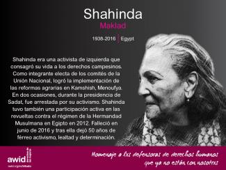Este año, el Tributo Virtual honra a 7 defensoras de derechos humanos de la región de Asia meridional y Sudeste asiático. Son defensoras que han hecho aportes fundamentales para lograr avances en los derechos humanos y de las mujeres, los derechos de los pueblos indígenas y el derecho a la educación. Estas defensoras se desempeñaron como abogadas, activistas de derechos de las mujeres, académicas y políticas. Únete a AWID para conmemorar a estas defensoras de derechos humanos, su trabajo y su legado, compartiendo los memes aquí incluidos con tus colegas, amistades y redes; y tuiteando las etiquetas #WHRDTribute y #16Días.
