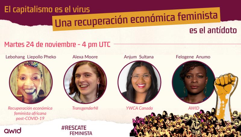 Te invitamos a participar en una conversación global sobre las cuatro iniciativas feministas que han diseñado los planes para un rescate y una recuperación económica feministas.