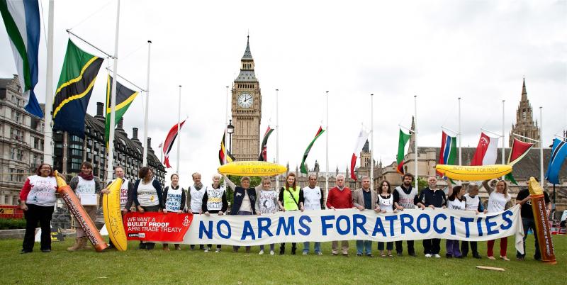 Aunque los países continúan firmando el Tratado e intentando comprender las particularidades de la ratificación, para el complejo militar-industrial global todo sigue igual. Por ejemplo, del 10 al 13 de septiembre de 2013 el Reino Unido—signatario del TCA—fue anfitrión de un ‘Evento Mundial Líder en Defensa y Seguridad’ de la Feria Internacional de Equipo de Defensa y Seguridad (DSEi), una feria global de armas que cada dos años reúne a aproximadamente 1,500 empresas de armas y 30,000 compradores y vendedores de armas.[2]