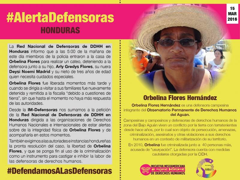 IM-Defensoras exige la seguridad de la defensora Orbelina Flores