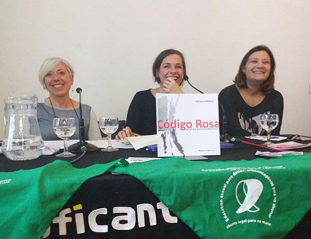 El libro «Código Rosa. Relatos sobre abortos», se inscribe en esta historia, pero va más allá en la presentación de los testimonios. A partir de los relatos compartidos con las socorristas, la escritura de Dahiana Belfiori ayuda a que las experiencias se expandan, y no es sólo la de la mujer que se practicó un aborto la que se puede leer, es incluso también, la de una doctora aliada que enseña sobre aborto en la Universidad. La primera persona cruza la frontera de lo real hacia lo ficcional, creando una poderosa combinación creativa-política.