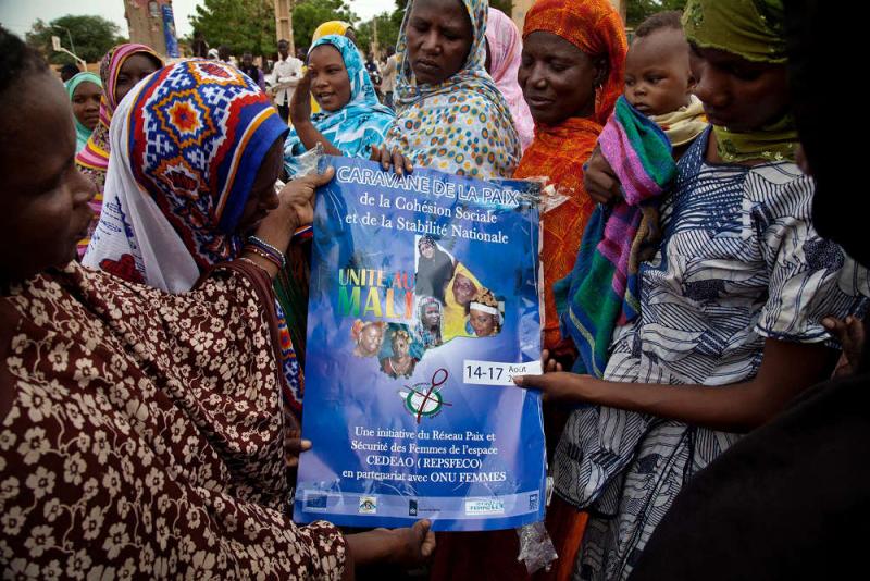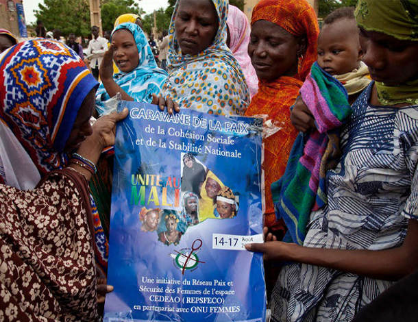 A pesar de estas estrategias y del dinamismo de los movimientos de mujeres por la paz en Mali, Bintou Founé Samaké Bouaré constata que el “proceso de negociación de paz no es sensible al género. Las mujeres estuvieron presentes de manera débil en el curso de las negociaciones, lo cual entra en contradicción con la resolución 1325 del Consejo de seguridad de la ONU”. Esta resolución, adoptada en el 2000, subraya la importancia de una participación igual de mujeres y hombres en la consolidación y el mantenimiento de la paz. Sucesivamente luego del 2000, otras seis resoluciones fueron adoptadas por el Consejo de seguridad de la ONU para completar el marco de aplicación y seguimiento del programa de la ONU sobre las mujeres, la paz y la seguridad.