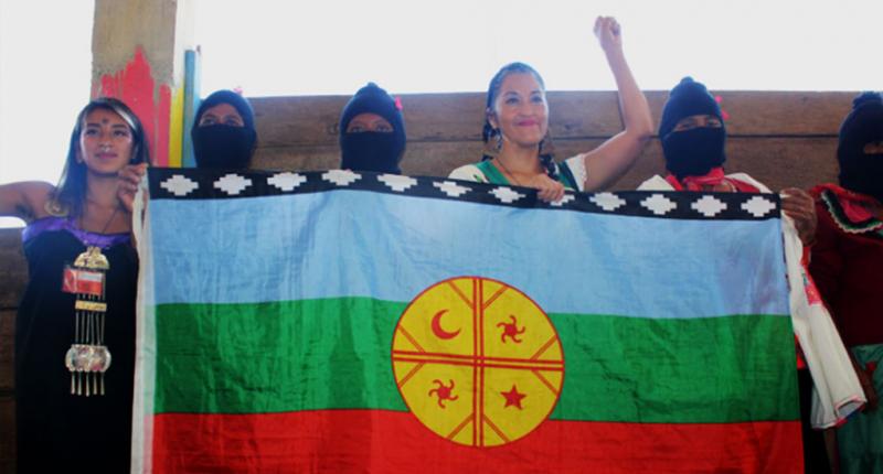 Moira Millán (cuarta desde la izquierda) viajó desde Pillán Mahuiza, una comunidad asentada en territorio mapuche recuperado en lo que hoy es Argentina. Mientras relataba los constantes ataques que su pueblo y su territorio enfrentan a diario, las mujeres de todo México, Mesoamérica y la Turtle Island (nombre originario de lo que hoy es Canadá) se pusieron de pie para compartir sus propias historias y tácticas de resistencia. Actualmente, Moira está siendo enjuiciada por proteger el territorio de su comunidad. A través de las fronteras la resistencia de las mujeres indígenas es de muchas maneras la misma. Las luchas por la soberanía, la autonomía y descolonización han sido constantes.