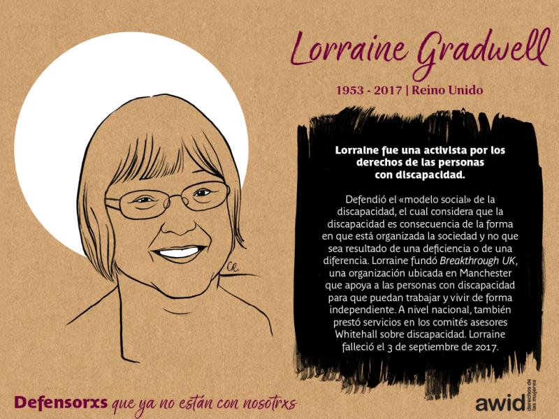 Y qué decir de Lorraine Gradwell, que cambió el panorama de los derechos de las personas con discapacidad en el Reino Unido, desde la introducción de los primeros taxis negros accesibles de Manchester y los pagos directos a personas con discapacidad para apoyar la vida independiente, hasta la creación la Coalición de personas con discapacidad del Gran Manchester (Greater Manchester Coalition of Disabled People) y el Avance en el Reino Unido (Breakthrough UK), una organización que apoya a las personas con discapacidad para vivir y trabajar de forma independiente. ¿Podría la historia de su incesante movilización para el modelo social de la discapacidad – que ve la discapacidad más como una consecuencia de la forma en que la sociedad está organizada que como el resultado de una deficiencia o diferencia – cambiar radicalmente la forma en se organizan las comunidades que buscan justicia en otros contextos?