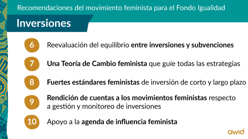 Trabajar para modificar el campo de las inversiones y apoyar la agenda de influencia de los movimientos feministas