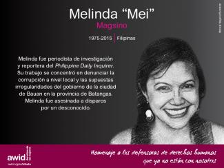 Melinda "Mei" Magsino 20 November 2020 Read in: Inglés Francés Español Category Derechos civiles y políticos Region Asia Asia del Este y del Sudeste