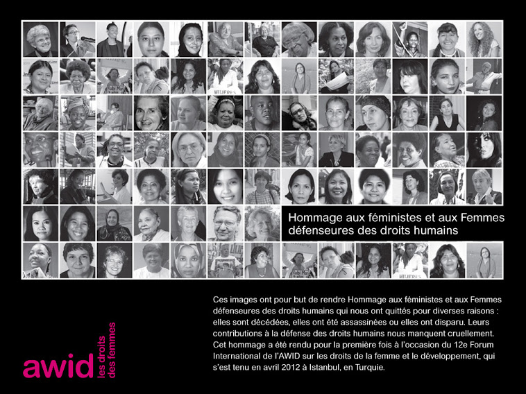 Mené à bout de dévouement, d’engagement et de passion, le combat des défenseuses des droits humains en faveur des droits, du genre et de la justice sociale a entraîné des changements dans bon nombre des communautés où il s’est implanté. L’Hommage en ligne 2015 de l’AWID aux défenseuses qui ne sont plus parmi nous célèbre la mémoire de femmes issues de différents horizons, notamment d’activistes, de femmes politiques, de pacifistes, d’auteures, d’artistes, d’avocates, de chercheuses et de journalistes. Ces défenseuses ont plaidé et œuvré en faveur des droits des femmes, des travailleurs-euses, des peuples autochtones, des personnes lesbiennes, gaies, bisexuelles et trans*, (LGBT), de la protection des terres, des droits environnementaux et des travailleurs et travailleuses du sexe; elles ont cherché à atteindre la justice légale et sociale et mené des campagnes pour le droit à l’éducation. Leur activisme témoigne des luttes collectives menées par tous nos mouvements sociaux. Cet hommage célèbre le souvenir des défenseuses des droits humains qui ne sont plus parmi nous et salue leur travail.