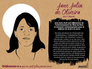 Jane Julia de Oliveira 20 November 2020 Read in: Anglais Français Espagnol Category Environnement Region Amérique latine Date of death / disappearance 2017