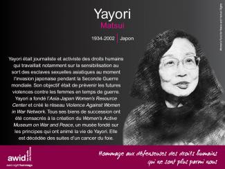 Yayori Matsui 20 November 2020 Read in: Anglais Français Espagnol Category Droits économiques, sociaux et culturels Region Asie