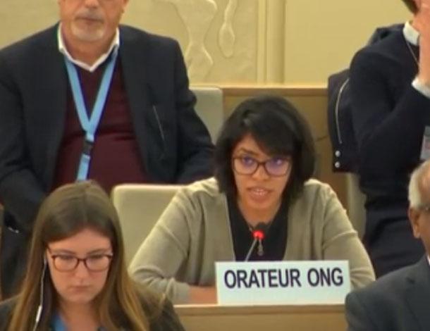 In front of a packed room at UN Headquarters in Geneva, Omaima Al Najjar, a woman human rights defender and political refugee from Saudi Arabia, delivered an urgent message to the Human Rights Council on Thursday February 28, 2019.