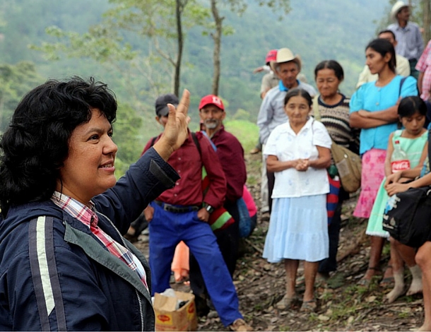Berta Cáceres was killed while sleeping in her home in La Esperanza, Honduras on 3rd March 2016. Over the past few years, she had been harassed, and received multiple death threats for her role in the movements she led opposing the Agua Zarca dam project. The project threatened to cut off the water supply to the Indigenous Lenca community in Honduras, depriving them of the right to sustainably manage and live off their territories and sacred river.