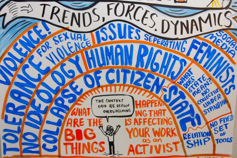 In multiple ways, the convenings surfaced the very real dangers and pushback that women continually face in challenging patriarchal power. And the dilemma of the contradicting compromises they often have to make in fighting for their rights with the protection of the very same systems – from patriarchal cultural norms to the state and funding partners – that tend to compromise them. From these observations, what also became clear was that there was need for ongoing reflection on what cohesive and effective movement building – and solidarity – would look like amid such challenges and contradictions.