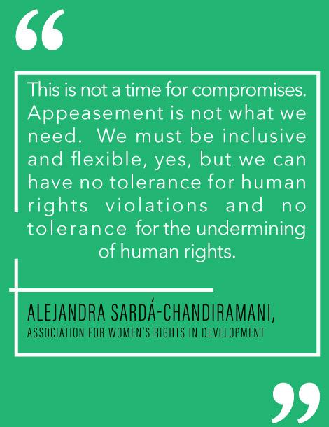 • This is a global human rights and gender justice issue which requires a feminist and human rights response. Jointly-developed, collaborative advocacy can push back against these alarming trends, and lift up our own feminist narratives and realities into human rights spaces.