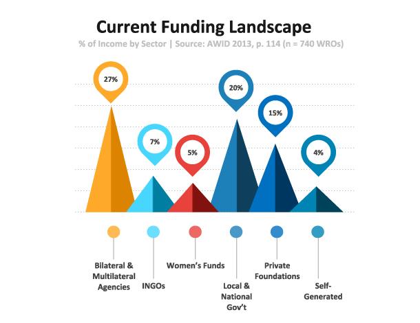 In terms of the amount of money coming specifically to women’s rights and feminist organizations from within current landscape, here are some numbers presented in this graph from previous research by AWID: