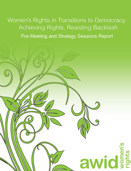 The Women’s Rights in Transitions to Democracy: Achieving Rights Resisting Backlash (Pre-Meeting and Strategy Sessions Report) is based on the pre AWID 2012 Forum consultation devoted to strategizing around women’s rights and transitions to democracy, attended by almost 100 women’s rights leaders from over 18 countries in the MENA region, as well as activists from Central and Eastern Europe, Latin America, Sub-Saharan Africa, and South Asia.