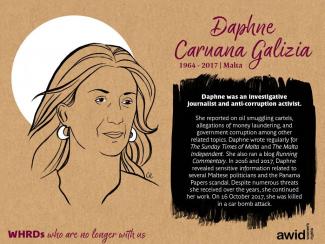 Daphne Caruana Galizia 20 November 2020 Read in: English French Spanish Category Civil & Political Rights Region Europe Date of death / disappearance 2017 Cause of death / disappearance Killed / Asesinada / Assassinée
